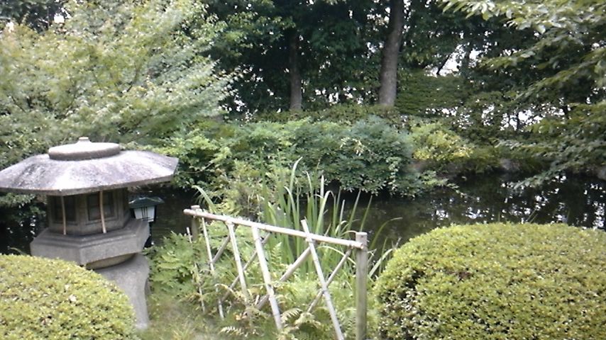 食事の後はお庭に出て散歩~池や灯篭がある和風のお庭