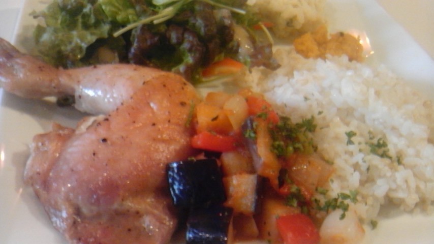 クヌギが頼んだロティサリーチキンとラタトゥユのプレート