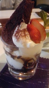 バナナとチョコレートケーキが入ったパフェ!