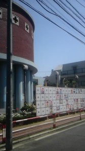4人で2区画14か所の掲示板にポスター貼りをしてきました。